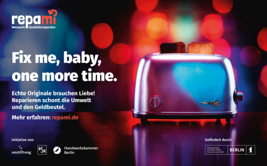Gegenständen ein neues Leben schenken: Mit repami – Netzwerk Qualitätsreparatur können Berlinerinnen und Berliner Reparaturcafés und qualifizierte Handwerksbetriebe in ihrer Nähe finden und kaputte Gegenstände reparieren. Die Initiatoren sind Größen im Bereich Entsorgung, Handwerk und Umweltschutz: Die Initiative wurde von der Berliner Stadtreinigung, der Handwerkskammer Berlin und anstiftung ins Leben gerufen in Zusammenarbeit mit dem BUND. Gefördert wird die Initiative durch die Senatsverwaltung für Mobilität, Verkehr, Klimaschutz und Umwelt Berlin.