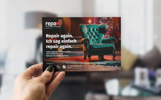 Vom Namen über die Website bis hin zur Kampagne durften wir das Netzwerk auf die Welt bringen. In Workshops mit Nutzern und Handwerksbetrieben haben wir Einblicke in die Verhaltensweisen und Herausforderungen bekommen und verschiedene Kampagnenideen verprobt. Die Ergebnisse aus den Workshops flossen direkt in die Gestaltung der Marke, Website und Kampagne ein. Mit der Website werden die Hürden der Reparatur gesenkt: Die Karte gibt eine umfassende Übersicht über die Angebote in Berlin und zeigt Reparaturcafés und -betriebe in direkter Nähe an. Mit der Kampagne verleihen wir dem Thema Ressourcenschutz Leichtigkeit: Die eigenen, alten Gegenstände sind Originale, die wertgeschätzt werden. Die Wertschätzung übertragen wir in umgeschriebene Songtexte und rücken das Thema Reparatur in den Vordergrund – eine Hommage an die Originallieder.